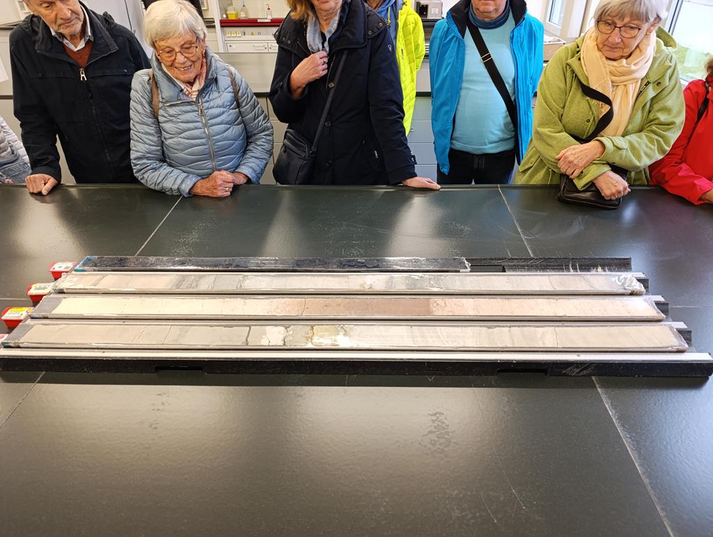 Uns wurden einige Bohrkerne gezeigt und erklärt, was in den unterschiedlichen Zeitepochen an Umweltfaktoren zu erkennen ist.